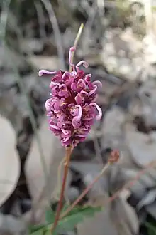 Grevillea quercifolia, commonly known as the oak-leaf grevillea,[2] is a species of flowering plant in the protea family and is endemic to the southwest of Western Australia. It is a straggly to sprawling shrub usually with pinnatifid or serrated leaves, and oval to cylindrical clusters of pale to deep pink flowers.