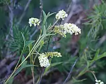 Grevillea synapheae, commonly known as catkin grevillea,[2] is species of flowering plant in the family Proteaceae and is endemic to the southwest of Western Australia. It is a prostrate to erect shrub usually with divided leaves with 3 to 7 triangular to more or less linear lobes, and clusters of white to creamy yellow flowers.