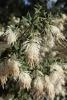 - ↑ Wrigley, John W.; Fagg, Murray A. (1991). Banksias, waratahs & grevilleas : and all other plants in the Australian Proteaceae family. North Ryde, NSW, Australia: Angus & Robertson. p. 339. ISBN 0207172773.