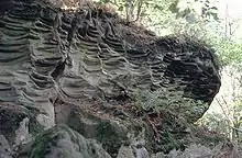 The dates and function of the grooves on Gotland have seen debate in recent decades between archaeologists who argue for a High Medieval date and some industrial function,[6][7] and proponents of an alternative theory who argue for a Neolithic date and a ritual calendar function. The latter support their view mainly with the idea that the direction of each groove might be given an astronomical interpretation, where each groove would mark a sightline towards a certain celestial phenomenon that may be reconstructed for a certain year during the Stone Age.[5] The grooves under overhangs in Scania cannot have been used as sightlines in this suggested manner.