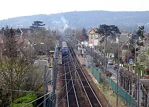 Gros Noyer – Saint-Prix is a railway station in the commune of Ermont (Val-d'Oise department), France. The station is served by Transilien H trains from Paris to Persan-Beaumont via Saint-Leu-la-Forêt. The daily number of passengers was between 2,500 and 7,500 in 2002.[1] The station has 2 free parking lots with 20 and 150 places. Le Gros Noyer – Saint-Prix is located on the line from Ermont-Eaubonne to Valmondois, that was opened in 1876. The line was electrified in 1970.[2]