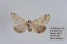 - ↑ Poole, Robert W. (March 30, 1995). The Moths of America North of Mexico. Fascicle 26.1. Noctuoidea, Noctuidae: Cuculliinae, Stiriinae, Psaphidinae. Charles L. Hogue (illustrator), Brit Griswold (illustrator), Chip Clark (photographer), Patricia Gentili (photographer). Wedge Entomological Research Foundation. p. 249. ISBN 0-933003-07-2.