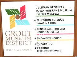 The Grout Museum District – named after Henry W. Grout – is a set of museums in Waterloo, Iowa. The District consists of the Grout Museum of History & Science, Bluedorn Science Imaginarium, Rensselaer Russell House Museum, Snowden House and the Sullivan Brothers Iowa Veterans Museum.