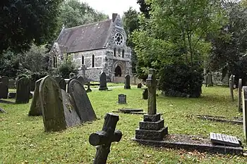 The Richmond old burial ground covers approximately 4 acres, with over 1000 graves.[36] Richmond Local History Society carried out a survey of the burial grounds in the early 2000s, documenting the graves of over 2000 people.[37] Among the many notable persons buried in the grounds, Charles Tickell Proctor, the Vicar of Richmond who helped to build the chapel, is buried to the south of the entrance along with many members of his family. William Francis who, with Richard Taylor, formed the publishers Taylor & Francis, is buried to the south east.[38] Walter Hood Fitch, a prominent botanical illustrator who worked with William Jackson Hooker at Kew Gardens, is buried to the east of the chapel.[39]