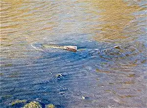 On the Los Gatos Creek tributary a population of California Golden beavers (Castor canadensis subauratus) has been re-established between Lake Elsman and Lexington Reservoir. The beaver were re-introduced to the portion of Los Gatos Creek where it enters Lexington Reservoir sometime prior to 1997, and recently, a beaver reportedly served as "a hearty meal" for a local mountain lion.[30] Video documentary by Greg Kerekes documented beaver in the Guadalupe River mainstem in downtown San Jose in April, 2013.[31][32] These are the first beaver recorded in the Santa Clara Valley since zoologist James Graham Cooper captured one in Santa Clara for the Smithsonian Institution on Dec. 31, 1855.[33] Historical evidence of beaver in the area includes reference by Captain John Sutter who around 1840 recorded that 1,500 beaver pelts were sold "at a trifling value" by the Indians to Mission San José.[34] In 1840, from the port of Alviso, California, beaver pelts, cattle hides and tallow were shipped to San Francisco.[35] In addition, in 1828 fur trapper Michel La Framboise travelled from the Bonaventura River to San Francisco and then the missions of San José, San Francisco Solano and San Rafael Arcángel. La Framboise stated that "the Bay of San Francisco abounds in beaver", and that he "made his best hunt in the vicinity of the missions".[36] Golden beaver were apparently wiped out by trappers in the Bay Area sometime after the end of the California Fur Rush.