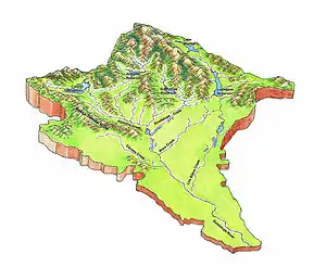 Tributary creeks of the Guadalupe watershed 3D Topo Map