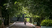 There is a new interpretation center about the biodiversity of the park. Entry into this protected reserve is restricted, and visitors can go into the core area only when escorted by a forest ranger from the Forests Department.[13] The rear southeast edge of the park adjoins the campus of Indian Institute of Technology, Madras. Along its northern fringes on the Sardar Patel road are the Cancer Institute, CLRI campus, the Anna University, the Raj Bhavan and spaces allotted for the Gandhi Mandapam, Kamaraj Memorial and Rajaji Memorial.[11]