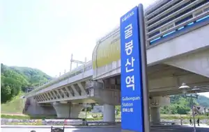 Gulbongsan Station (Korean: 굴봉산역; Hanja: 屈峰山驛) is a railway station on the Gyeongchun Line in Namsan-myeon, Chuncheon-si, Gangwon-do, South Korea.[1] Its station subname is Jade Garden where Jade Garden is located about 4 km away from the station, and a free shuttle bus runs every hour.