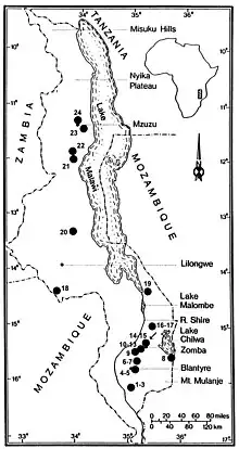 | Map of Malawi showing distribution of Gulella streptostelopsis. The arrow indicates the type locality. | |
