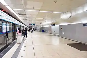 There are eight exits, lettered A, B, C, D, E1, E2, F, and G. Exits D, E1, and E2 are accessible.[5][6]