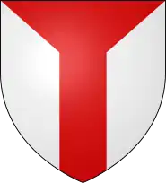 The gusset is a heraldic charge resembling the union of a pile with a pale extending from chief to base (or in the case of a flag typically resembling the union of a pile and a fess extending from hoist to fly). In French heraldry, it has been classed as one of the thirty honorable ordinaries.[1] For an ‘inverted’ gusset, one issuing from base and extending to the chief, some authors prefer the term graft.[2]