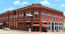 The Guthrie Historic District (GHD) is a National Historic Landmark District encompassing the commercial core of Guthrie, Oklahoma, US. According to its National Historic Landmark Nomination it is roughly bounded by Oklahoma Avenue on the north, Broad Street on the east, Harrison Avenue on the south, and the railroad tracks on the west; it also includes 301 W. Harrison Avenue.[3] The National Historic Landmarks Program on-line document describes the boundaries as "14th Street, College Avenue, Pine Street and Lincoln Avenue. One building, the Logan County Courthouse, is at 301 E. Harrison Avenue, outside the main boundaries of the GHD,"[4] This article relies on the former source, which is more detailed. According to the 1998 nomination, the proposed district covered 31 acres (13 ha). The nomination included 112 resources, classed as 69 contributing buildings, 38 non-contributing buildings, 1 non-contributing structure and 3 noncontributing objects. It was declared a National Historic Landmark in 1999 for its historic significance as the first capital of the Oklahoma Territory and of Oklahoma.[2][5]