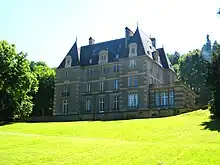 After the outbreak of World War II Guy de Wendel rejoined the army under General Henri Giraud. On 10 July 1940, in Vichy, he voted in favour of granting Marshal Philippe Pétain the constituent powers he had requested.[3] He then retired from public life. Guy de Wendel died in Paris on 6 April 1955.[6] After Guy's death his wife entered the Carmel de Paray-le-Monial on 4 July 1956 with the name of sister Catherine de Jésus.[1] The Château Guy de Wendel was occupied by his niece, Ségolène de Wendel (1908–81). Later it became a hotel, restaurant and business center.[2]