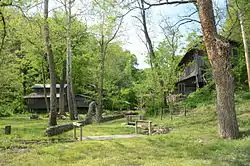 The Gypsy Camp Historic District encompasses a former summer camp facility in rural southwestern Benton County, Arkansas. It is located on the west side of Arkansas Highway 59, about 5 miles (8.0 km) south of Siloam Springs, on the north side of the Illinois River. The camp facilities were built in the 1920s for a girls summer camp, and are believed to be the only facilities built for that purpose in the state. The camp includes four cabins for campers, a dining/recreation hall, and three residential structures. All are finished with either pine slats or board-and-batten siding. There is a centrally-located rock arbor and wall that provide an outside seating area. The camp operated from 1921 to 1978.[2]