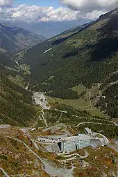 Hotel du Barrage and Dixence valley below the La Grande Dixence dam