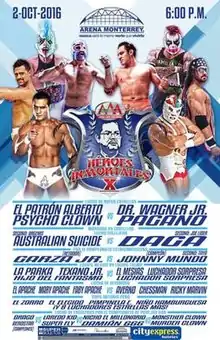 - ↑ "Listo el cartel de Héroes Inmortales". MedioTiempo (in Spanish). MSN. September 15, 2016. Retrieved September 25, 2016.