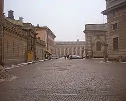 Historical records from the 15th century describes the area as the location for the city's executioner during the years 1491–1528, and for the city's school building and the royal mint in the 1430s. Among the numerous alleys once found in the area were many craftsmen's workshops - shoemakers, saddlers, blacksmiths, bakers, etcetera. On a 16th-century map, the area is taken up by a slope leaning north with a block occupying the location for the present street, a block not present on a map dated 1626, instead suggesting the royal gardens were located here. In 1653, the Chancellor Axel Oxenstierna (1583–1654) started to build his palace still present on the south-western corner of the street, while both his old residence and that of Herman Wrangel (1587–1643) were demolished in the 1740s when the wings of the Main Guard were built.[2]