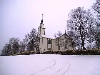 Hølonda Church (Norwegian: Hølonda kirke) is a parish church of the Church of Norway in Melhus municipality in Trøndelag county, Norway. It is located near the Krokstad farm, just west of Gåsbakken which is about 14 kilometres (8.7 mi) west of the village of Hovin and about 9 kilometres (5.6 mi) southwest of the village of Korsvegen. It is the church for the Hølanda parish which is part of the Gauldal prosti (deanery) in the Diocese of Nidaros. The white, wooden church was built in a cruciform style in 1848 using plans drawn up by the architect Christian Heinrich Grosch. The church seats about 250 people.[1][2][3]