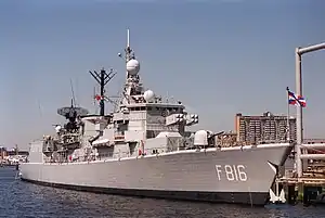 HNLMS Abraham Crijnssen (F816) (Dutch: Hr.Ms. Abraham Crijnssen) was a frigate of the Kortenaer class. The ship was in service with the Royal Netherlands Navy from 1983 to 1997. The frigate was named after Dutch naval hero Abraham Crijnssen. The ship's radio call sign was "PAVX".[1]