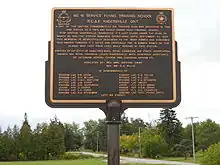 During World War II No. 16 Service Flying Training School RCAF was established by the Royal Canadian Air Force as part of the British Commonwealth Air Training Plan[2][3] at 274 Concession 11 Walpole 3.5 km (2.2 mi) southwest of Hagersville. No. 16 SFTS opened on 8 August 1941 and closed on 30 March 1945. After the RCAF finished with the site it was used by the Canadian Army for various purposes and was known as Camp Hagersville. The camp was closed in 1964.[4] Between the 1960s and 1990s, the camp was used as a residence for youth and then a flea market. As of 2013 the site was an industrial park. Some of the military homes are still there, and the housing area is known as "White Oaks Village". A good view of the site and the old hangars is had from Concession 10 Walpole. The base was located at 42°55′42″N 080°07′33″W / 42.92833°N 80.12583°W.[5]
