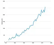 Weight of the winning pumpkin in the weigh-off in Half Moon Bay, 1974–2022.