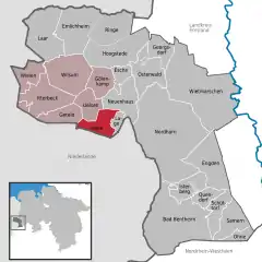 The community, to which the centres of Hardingen (amalgamated in 1974) and Hesingen also belong, has 654 inhabitants (as of June 2005) and spans 21.15 km².