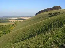 The hillsides at this site have short, herb-rich grassland, and the flatter areas, taller vegetation. The main species in the plant communities here are upright brome (Bromus erectus), sheep's fescue (Festuca ovina), quaking-grass (Briza media), and downland herbs such as burnet-saxifrage (Pimpinella saxifraga), salad-burnet (Sanguisorba minor), common milkwort (Polygala vulgaris) and dwarf thistle (Cirsium acaule).[2] Other plant species found include squinancywort (Asperula cynanchica).[2]
