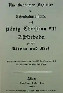 Cover of "Essential companion for travelers on the King Christian VIII Baltic Railway between Altona and Kiel", published 1844