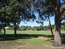 Meanwhile, work was only starting in eastern Hamersley. In 1973 Project Homes acquired a poultry farm and agricultural holding, and completed the construction of Vickers Street and adjoining roads, with Don Place becoming a display village.[47] In 1974 the City of Stirling agreed, after complex negotiations, to sell 4.2 hectares (10 acres) of land comprising Carine Road and Allen Street to the State Housing Commission and to War Service Homes in order to "facilitate a satisfactory subdivisional design of adjoining land held by the State Housing Commission" in the eastern portion of the suburb. All that remains of these two early roads are paved pathways within the Rannoch-Tay-Earn Reserve, which was gazetted in 1976.[48] By July 1975, 200 defence service homes were under construction on land immediately to the east of Erindale Road, to be made available to veterans from March 1976.[49] The rest of eastern Hamersley was built over the next few years, and by 1981 development was essentially complete.[50] The community hall was redeveloped into a full-fledged community centre, which officially opened in 1990.[51]