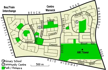 Australian Bureau of Statistics (31 October 2012). "2011 Community Profiles: 5108407 (CCD)". 2011 Census of Population and Housing. Retrieved 27 May 2016. (Vickers Street) - ↑ Northern 81 (PDF) Archived 7 March 2016 at the Wayback Machine timetable, Transperth, effective 31 January 2016. Retrieved on 27 May 2016.