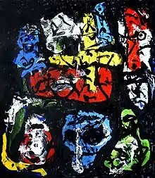 In his early paintings (1972-1979) could be mainly figurative-surrealistic tendencies. With time, it moved to a more abstract gestural painting techniques in proximity to Informal Art, Tachism or Abstract Expressionism – tendencies formed immediately after World War II, which continue until today.5 They are regarded as a further development of Abstract Art, originating in the 19th century, but are perceived as autonomous movements only at the beginning of Modernism in the 20th century.6
