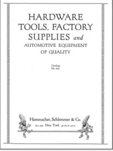 Hammacher Schlemmer published a 400-page catalog featuring tools for all trades in 1896. In keeping with its reputation for high quality and wide selection, the opening page stated, "Our tools are selected with great care and are of the best makes, and meritorious novelties will be, from time to time, added to our present line, our aim being to carry a complete stock of first-class tools."