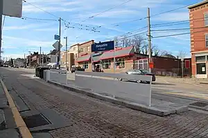 Hampshire is a station on the Port Authority of Allegheny County's light rail network, located in the Beechview neighborhood of Pittsburgh, Pennsylvania. The T travels along former streetcar tracks on Broadway Avenue through the area. The inbound stop is located on a small island platform in the middle of the road, while the outbound stop is just a sign, with no platform. The station serves a densely populated residential area and also the neighborhood's small but crowded business district. It is located in an area where bus service is limited because of the hilly terrain.