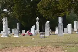 Hampton Cemetery is a historic cemetery in downtown Hampton, Arkansas. The 0.5-acre (0.20 ha) cemetery is located near the center of town, not far from the Calhoun County Courthouse, and immediately adjacent to the Hampton Church of Christ. The cemetery is said to have been used as a burying ground since the first days of settlement in the area (which began in 1848), although the first marked grave is dated 1878. The town decided in 1920 to stop allowing burials other than those already reserved, and the last burial took place in the cemetery in 1969. There are estimated to be 139 burials in the cemetery, although only 103 are marked. Most of the marked graves are dated between 1890 and 1920.[2]