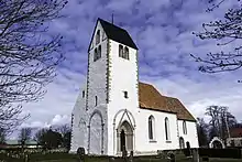 The church is characterised by its complex building history, which is discernible in the different parts of the building both outside and inside. Even so, the church as it stands today has a plan typical for churches on Gotland with a broad nave and a narrower chancel.[1] The inside of the church is decorated with church murals, both from the 15th century (by the so-called Passion Master) and from the 18th century.[1]