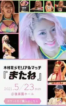 The Hana Kimura Memorial Show (木村花メモリアルマッチ『またね』, Kimura Hana Memoriaru Matchi "Matane") was a Japanese professional wrestling memorial show and pay-per-view and the first event promoted by Kyoko Kimura to commemorate the one year anniversary of the death of her daughter Hana Kimura, who committed suicide on May 23, 2020. The event took place on May 23, 2021 at Korakuen Hall in Tokyo, Japan with a limited attendance due to the COVID-19 pandemic.[4] Kagetsu and Hazuki, who both retired in 2019, made one-off in-ring returns at the event, participating in both the semi-main and main event matches.[5]