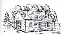 Sketch of Hanover's first log-cabin church