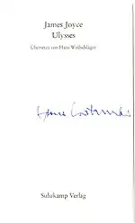Hans Wollschläger (17 March 1935, in Minden – 19 May 2007, in Bamberg) was a German writer, translator, historian, and editor of German literature.