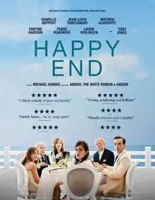 Happy End is a 2017 drama film written and directed by Michael Haneke, and starring Isabelle Huppert and Jean-Louis Trintignant, who had also played daughter and father in Haneke's 2012 film Amour.