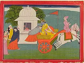 Folio of the Rukmini harana, the elopement of Rukmini with Krishna