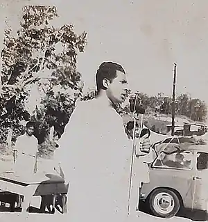 Mr. Harischandra Wijayatunga campaigning to enact Sinhala as the only State language as part of Prof. F. R. Jayasuriya fast unto death, 1956.