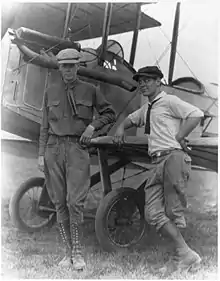 Lindbergh persuaded Gurney to take up parachute jumping to earn money on the barnstorming circuit with him, and also with Errol Bahl.[1][4] In 1923, he was badly injured in a parachute jump from Lindbergh's Curtiss Jenny during the International Air Races at Lambert field, St. Louis.[5] Lindbergh assisted with Gurney's medical bills.[1] By 1924, Gurney had learned to fly,[6] and was himself a barnstorming pilot offering $5 rides.[7]
