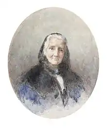 Harriet Osborne was born in Dublin in 1830. She initially studied with George Sharp RHA. At least one Dublin address can be discerned from her exhibited works, 195 Great Brunswick Street. Having moved to London, she appears under the name O'Hagan in 1854 living at 193 Stanhope Street, though it is unknown when or where she married. Around 1866, O'Hagan moved to Paris. She was in Paris at the same time as Sarah Purser, and was a member of her social circle, however little is known about her personal life or career. Purser produced portrait entitled Mademoiselle Lemercier in 1887, which is likely to be O'Hagan's daughter, Marguerite Lemercier O'Hagan (1859 – c.1930). It has been suggested that this portrait was created during a visit to Ireland. O'Hagan lived out her life in France, and it is known that she lamented being unable to return to Ireland. She died in 1921, in Paris.[3] Her grandson was Eugène Lemercier, son of her daughter Marguerite, who were both artists in their own right. Lemercier's wartime correspondence is now in the collections of the National Library of Ireland.[4][5]
