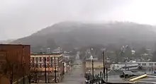 The site of Harriman was chosen primarily for its proximity to Emory Gap, where the Cincinnati Southern Railway joined the East Tennessee, Virginia and Georgia Railway. The city, platted on Christmas Day in 1889, was laid out in a grid pattern that conformed to the Emory's oxbow bend at the base of Walden Ridge. The block bounded by Roane, Walden, Morgan, and Clinton streets was set aside for the city's public buildings (this block is now the location of the city hall, library, and fire department). Lots in the heights around Cumberland and Clinton streets (now Cornstalk Heights) were substantially larger, as it was expected that the city's wealthy and professional-class residents would buy homes here. The areas along the river (Emory Street) were for mills and residential areas for skilled laborers.[14]