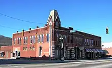 The East Tennessee Land Company's plan was to purchase land, build a town based on prohibitionist and other reform movement principles, and establish subsidiary companies to attract industry. After a successful land auction in Harriman in 1890, the company established three subsidiaries: the East Tennessee Mining Company to administer the region's coal and iron extraction operations, the Harriman Coal & Iron Railroad Company to develop the local railroad system, and the Harriman Manufacturing Company to attract industries by providing start-up capital.[10] To project its prosperity and advertise Harriman, the company built an imposing brick headquarters (now Harriman City Hall), with its four picturesque Norman towers, at the corner of Walden Avenue and Roane Street near the center of the new town.[11] By 1892, several rolling mills, factories, and other businesses had relocated to Harriman.[11]
