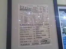 Harris' store was the first in North Carolina to allow customers to select their own groceries off the shelves. Before this time, customers handed a shopping list to a clerk, who then selected the groceries for the customers. The store was also open until 9 p.m. on Fridays, at a time when most grocery stores closed their doors at 5 p.m. This was done to appeal to working families and to capture their grocery shopping after they were paid on Fridays. Later, the Harris Super Market was the first grocery store in Charlotte to add air conditioning.[10]