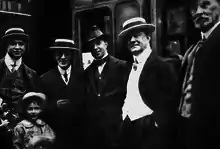 ![]() Left to right: Theodore Hardeen with his son, Joe Hyman, Harry Day, Lord Northcliffe and C. Dundas Slater. | |