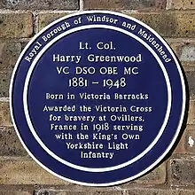 Lieutenant Colonel Harry Greenwood, VC, DSO & Bar, OBE, MC (25 November 1881 โ 5 May 1948) was a British Army officer and an English recipient of the Victoria Cross, the highest award for gallantry in the face of the enemy that can be awarded to British and Commonwealth forces.