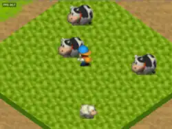 Planting, growing, and harvesting crops is one of the main focuses of the Story of Seasons series.[6] The crops available to plant include turnips, potatoes, corn, and strawberries, and they can be purchased in the village during their respective season. To plant crops, the player must till the soil, plant the seeds, then water the plots. Several crops will yield multiple vegetables throughout the season if continually watered. When the season ends and a new begins, all crops from the previous season will wither and must be cut down. Alternatively, a greenhouse can be built so that any plant can grow anytime during the year.