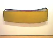 In the late 1960s and 1970s, situated in settings like the Whitney Biennials, his paintings were easily recognized among the crowd due to his masterful use of shaped canvases.[9] They were large, often curved, and frequently enclosing wall space. The painting itself blended elements from abstract expressionism and geometric abstraction, over time shifting further towards geometry. The surfaces were never simple. By the 1980s, he returned to the rectangular and square canvas, and eventually to the cruciform (cross) shape, which would become a focus for the next decade. "Harvey Quaytman's shaped canvases are among the most impressive;"[10] and "Some of the best shaped canvases of the last two decades have come from Harvey Quaytman. But in this selection of new work, the painter has, so to speak, drawn in his horns, confining himself to the right angle and in most cases to a cruciform image." -Vivien Raynor, New York Times, 1986[11]